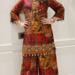 Work Type : all over print full heavy handwork cells work in kurta with matching divider.