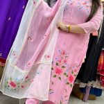 Out of StockAttractive organza 3pc pant set with hand & floral work on all over the kurta with matching plain pants & dual colour dupatta & matching floral work on dupatta.