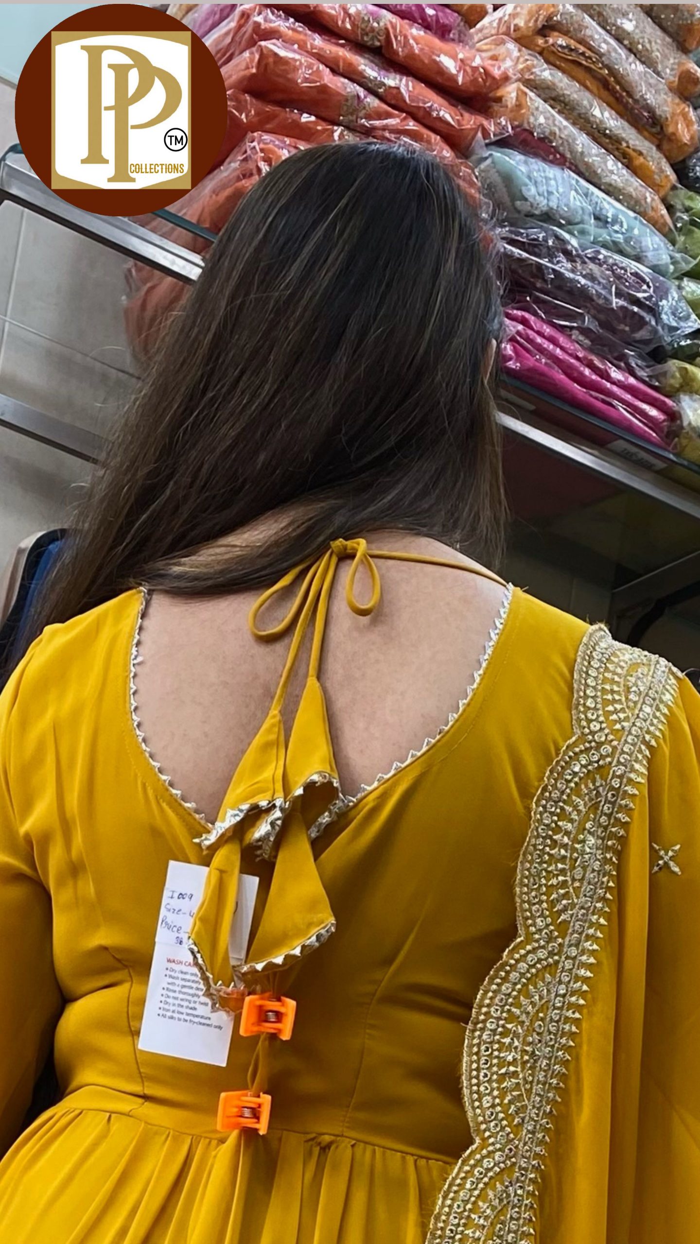Description : 2piece Gown Fabric Type : Georgette Style : Anarkali Set Work Type : Frill Style With Have Zari & Sippy Work Matching Dupatta.