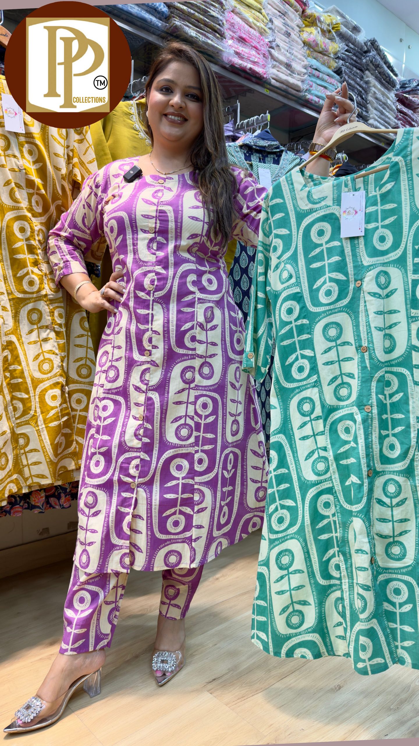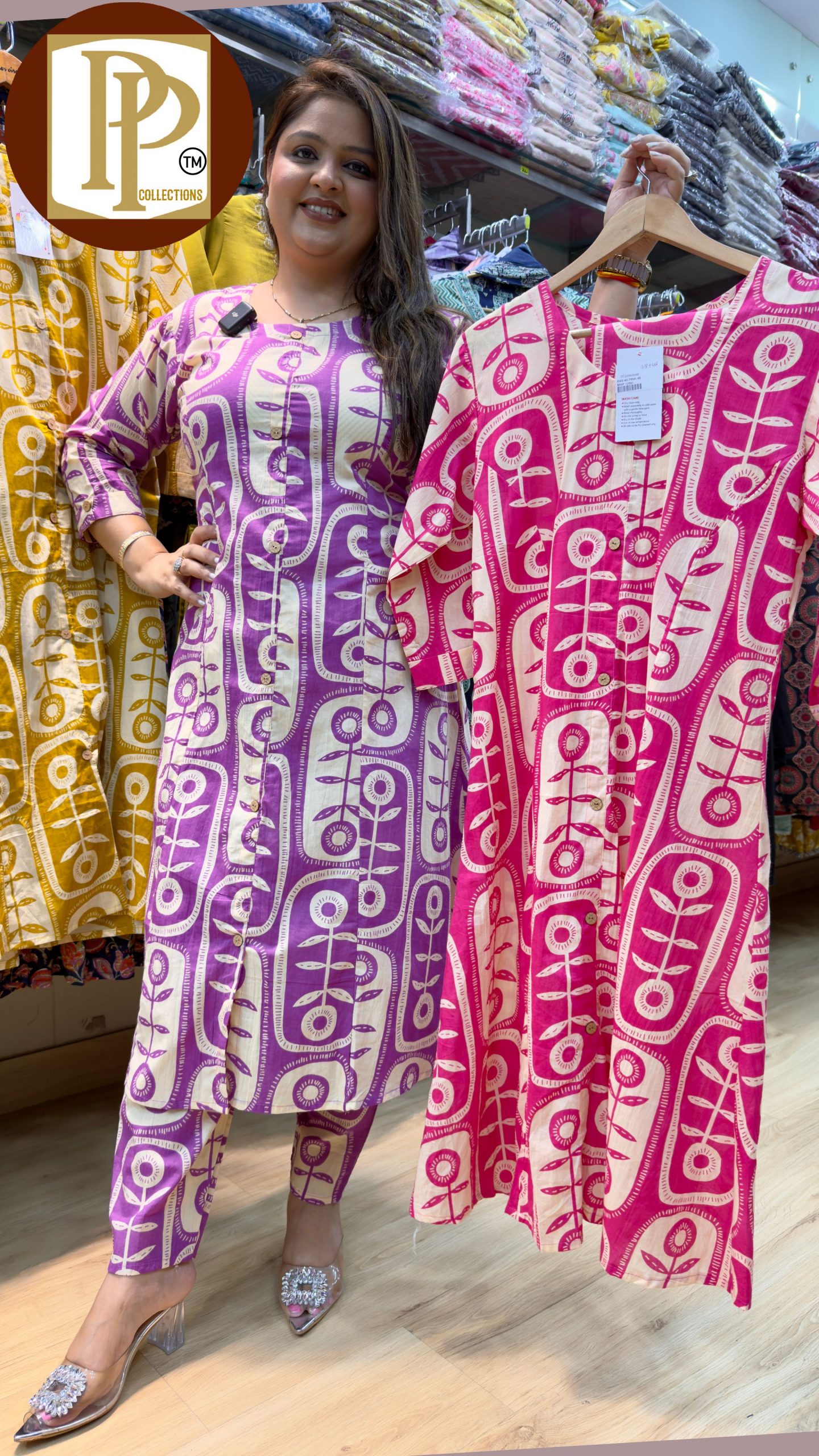 Description : 2piece Pant Set Fabric Type : Cotton Style : Co-ord Sets Work Type : A-Line Pattern On All Over Printed.
