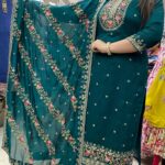 Attractive 3pc silk pant set with thread work on all over the kurta with matching plain pant with matching heavy thread work on all over the dupatta.