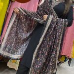 Attractive 3pc silk pant set with thread & original mirror work on upper part & borders of sleeves with matching plain pant with matching sippy work & digital print on all over the dupatta.