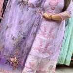 Out of StockAttractive 3pc cotton pant set with thread work on all over the kurta with matching thread work on organza borders of kurta & sleeves with matching thread work on pant borders with matching digital print on all over the dupatta.