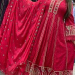 Attractive 3pc rayon anarkali pant set with hand & thread work on all over the kurta & matching print pattern on all over the kurta with matching work on borders of kurta & sleeves on organza with matching work on organza on pant borders with matching print & thread work on all over the dupatta.