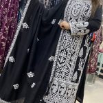 Attractive chinnon 3pc chikankari work palazzo set with full chikankari work on all over the kurta & matching work also on palazzo with matching thread work also on borders of the dupatta.