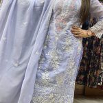 Out of StockAttractive 2pc organza pakistani pant set with thread work on all over the kurta with matching plain pant with matching thread work on all over the dupatta.