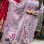 Out of StockAttractive 3pc cotton straight suit with hand & brush paint work on all over the kurta with matching printed pattern also on dupatta with matching plain pant.