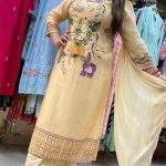 Attractive kota doria 3pc digital print pant set with print pattern on upper part with plain pant & matching shiffon dupatta.