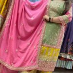 Attractive 3pc silk divider set with heavy hand & thread work on all over the kurta with matching hand & thread work on all over the divider with matching thread work on all over the contrast dupatta.