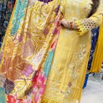 Attractive 3pc cotton pakistani pant set with thread work on all over the kurta with matching laces work on borders of kurta & sleeves with matching laces work on pant borders with matching print pattern on all over the dupatta.