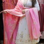 Work Type : full threadwork in neck handwork with matching contrast Dupatta with divider .