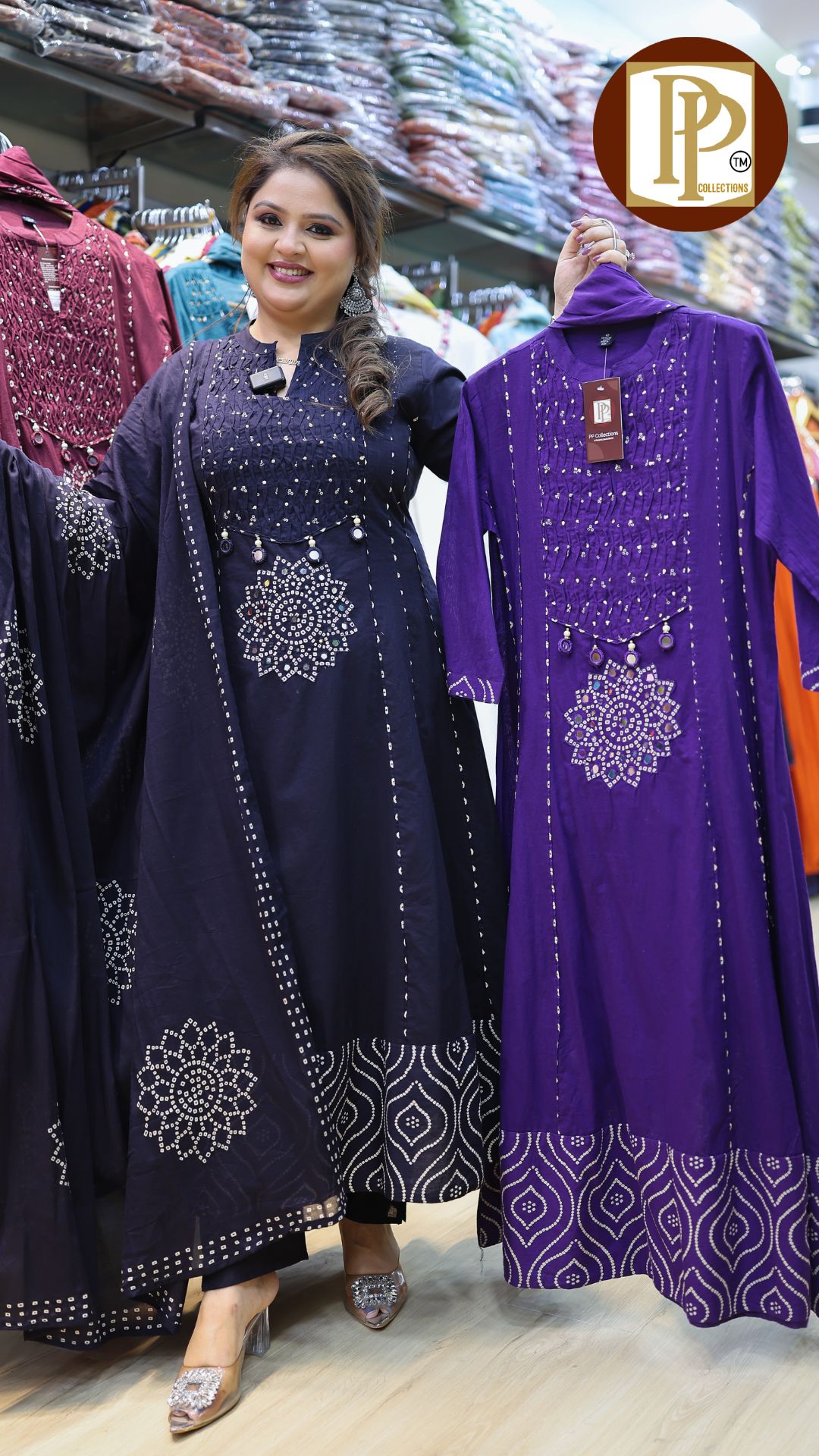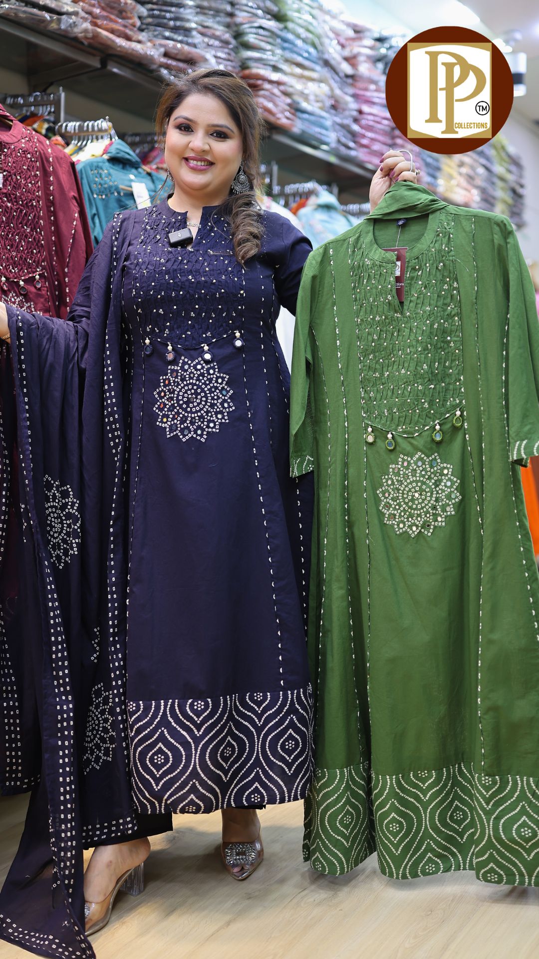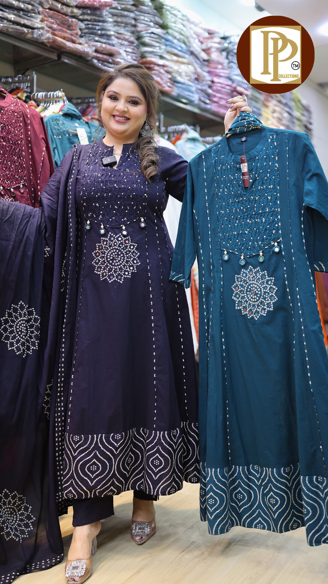 Work Type : full heavy threadwork original mirror work in anarkali with matching pants & printed dupatta.