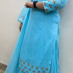 Out of StockAttractive 2pc rayon palazzo set with thread work on upper part & borders of sleeves & kurta with matching thread work on palazzo borders.