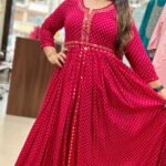 Attractive single piece rayon gown with front slit cut with attached inner with kamar band & original mirror work on fornt part with plain dupatta & block print pattern all over the dress.