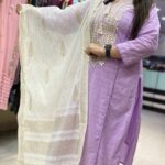 Out of StockAttractive cotton 3pc pant set with thread & leather leaf work on upper part with plain pant with cota doriya work on dupatta.