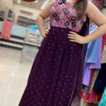 Out of StockAttractive georgette 3pc nayra cut palazzo set with thread work on upper part with print pattern on upper part with sippy work on kurta with plain palazzo with plain dupatta.