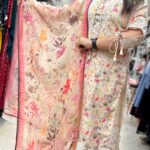 Out of StockAttractive cotton 3pc pant set with laces work on upper part with digital print pattern on kurta with laces work on kurta, pant & dupatta borders with matching print pattern on pant & dupatta with dori style designer sleeves .