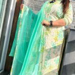 Attractive cotton 3pc pant set with print pattern on all over the kurta with plain pant with matching print pattern on kota doriya dupatta.