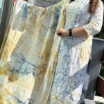 Attractive cotton 3pc pant set with thread work on kurta with plain pant with print pattern on dupatta.