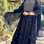 Attractive rayon 3pc nayra cut divider set with hand & foil mirror work on kurta with matching work on divider borders with plain dupatta with matching hand & foil mirror work on divider borders.