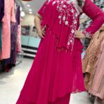 Out of StockAttractive georgette 2pc coord set with hand & original mirror work on upper part with plain palazzo with matching hand work on sleeves.