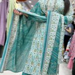Out of StockAttractive rayon 3pc pant set with hand work on upper part with print pattern on all over the kurta with matching printed pant & dupatta.