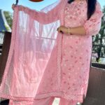Attractive cotton 3pc afghani pant set with thread work on upper part & borders of kurta with print pattern all over & plain afghani pant with matching work on dupatta borders.