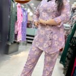 Attractive 2pc cotton angrakha style coord set with hand,thread & original mirror work on top with shifli work on top with printed pant.