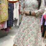 Attractive cotton floral printed middy dress with print pattern on all over the dress with matching print on complimentary belt.