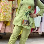 Attractive 2pc cotton collar coord set with hand & paint brush work on shirt with matching plain pant.