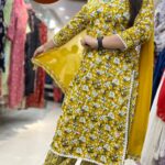 Out of StockAttractive 3pc cotton pathani pant set with hand work on upper part & print all over the kurta with matching printed pant with chiffon dupatta.