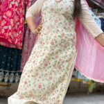 Out of StockAttractive 3pc cotton pathani pant set with thread & sippy work on all over the kurta with matching thread work on pant borders with matching contrast dupatta.