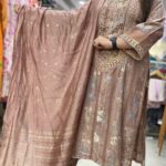 Attractive 3pc cotton pakistani pant set with hand work on upper part & print all over the kurta with matching print on tulip pant with matching hand & sippy work on dupatta.