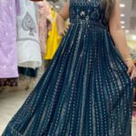 Attractive 2pc georgette hand work party gown with thread & sippy work on all over the front & back of dress with matching plain dupatta.