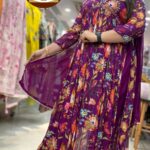 Attractive 3pc chinnon alia cut with hand work on upper part & digital print pattern on all over the kurta with matching print on pant & dupatta borders.