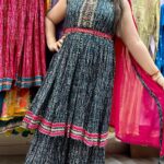 Attractive rayon 3pc front slit cut peplum sharara set with hand & original mirror work on upper part with print pattern on kurta with thread & foil mirror work on sharara with print pattern on dupatta borders with original mirror work on front cut border of the kurta with matching original mirror work on belt.
