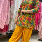 Attractive 2pc chinnon afghani coord set with thread & original mirror work on upper part & digital print on all over the shirt with matching thread & original mirror work on afghani pant borders.
