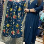 Attractive 3pc dola silk pant set with hand work on all over the kurta with matching plain pant with matching benarasi print dupatta.