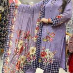 Out of StockAttractive 3pc crepe pant set with highlighting hand work on digital print kurta with matching plain pant with matching digital print dupatta.