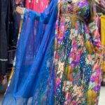 Attractive 2pc chinnon gown with hand & thread work on upper part & digital print pattern on all over the kurta with matching print pattern on dupatta borders.