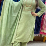 Attractive 3pc cortrise pant set with hand work on upper part with matching plain cortrise pant with matching cortrise borders on dupatta & laces work on kurta & sleeves borders.
