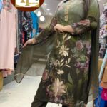 -28% OffAttractive 3pc muslin silk pant set with hand & original mirror work on upper part & digital print pattern on all over the kurta with matching plain silk pant with matching plain shiffon dupatta.