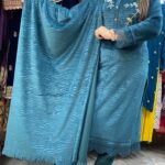 Attractive 3pc ice velvet pant set with hand & laces work on upper part with matching plain velvet pant with matching plain shawl with matching laces work on kurta & sleeves borders.