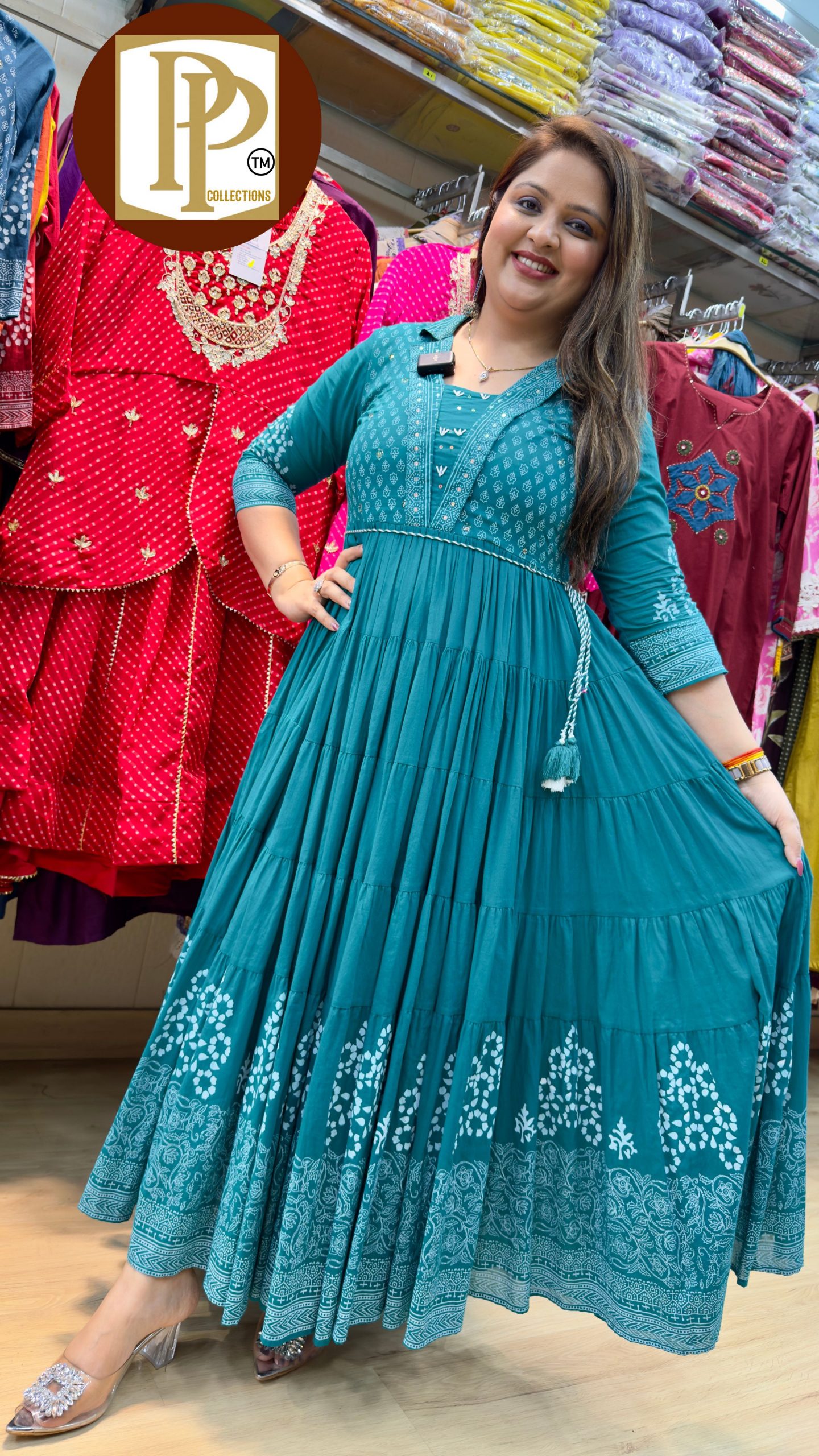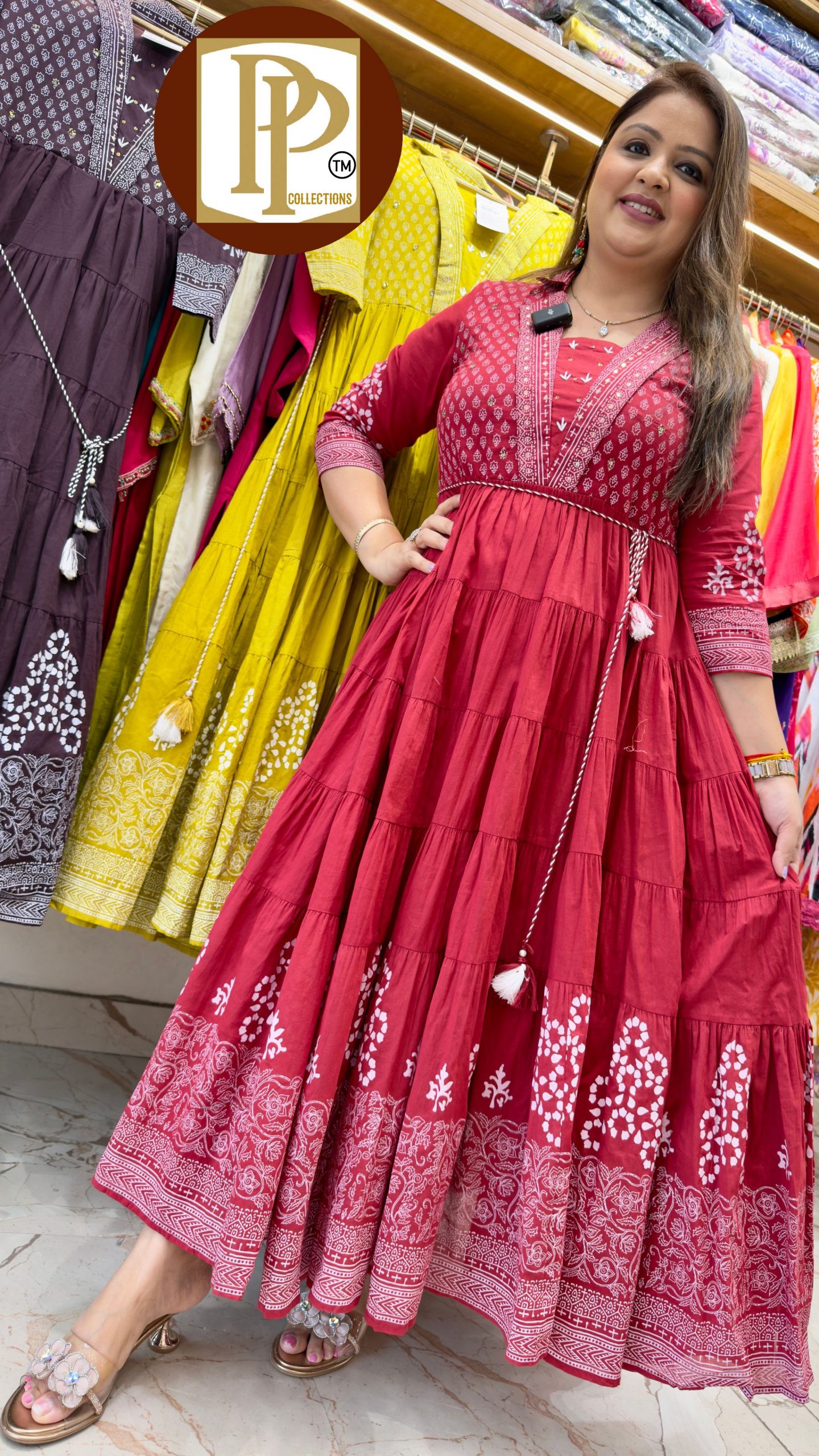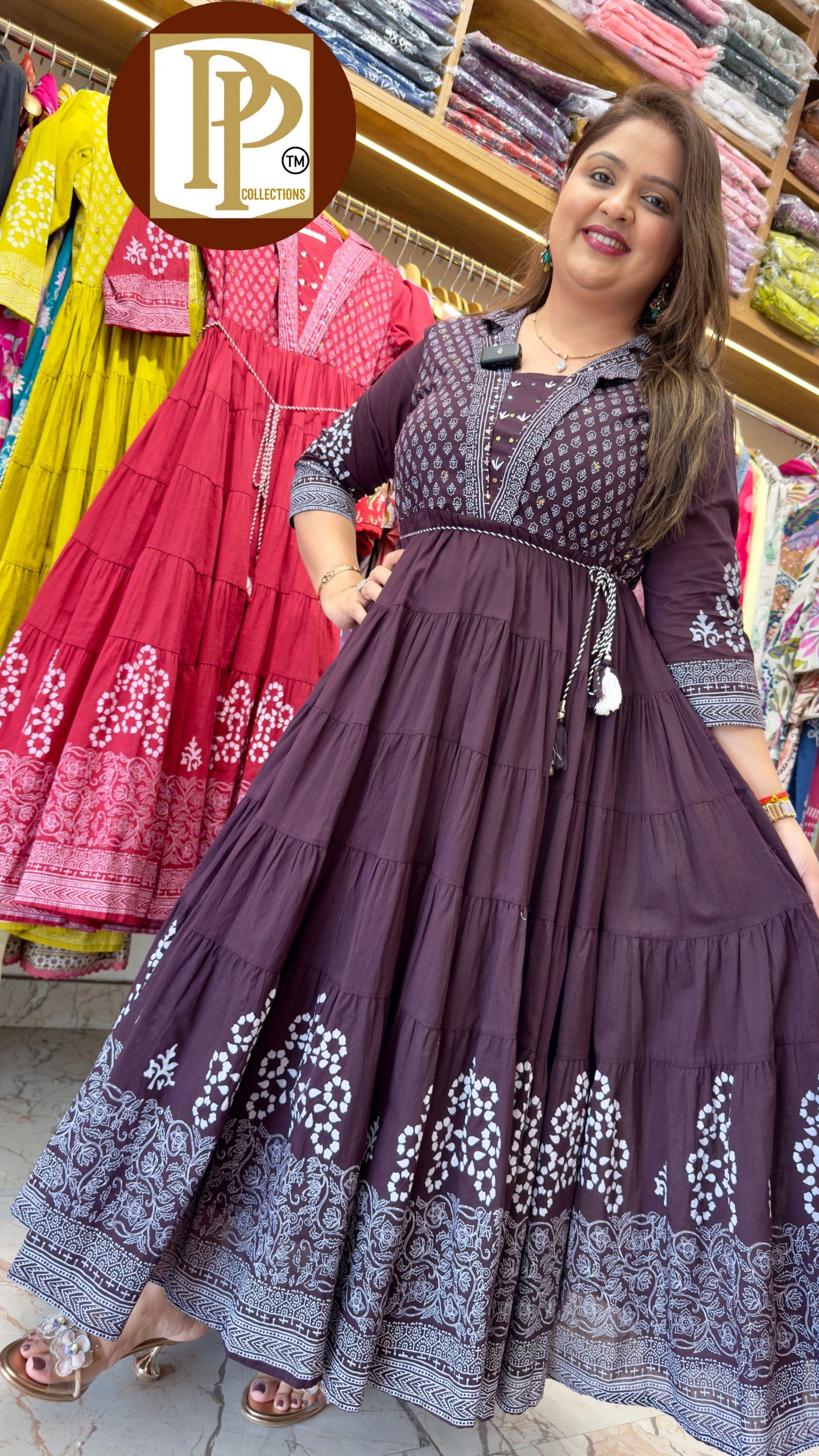 Description : 1piece Gown Fabric Type : Cotton Style : Collar Pattern Gown Work Type : Printed On Sippy & Hand Work.