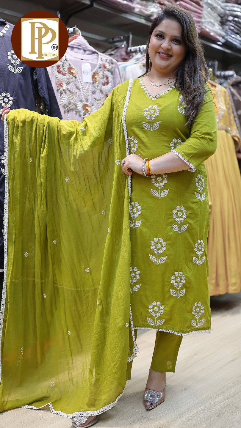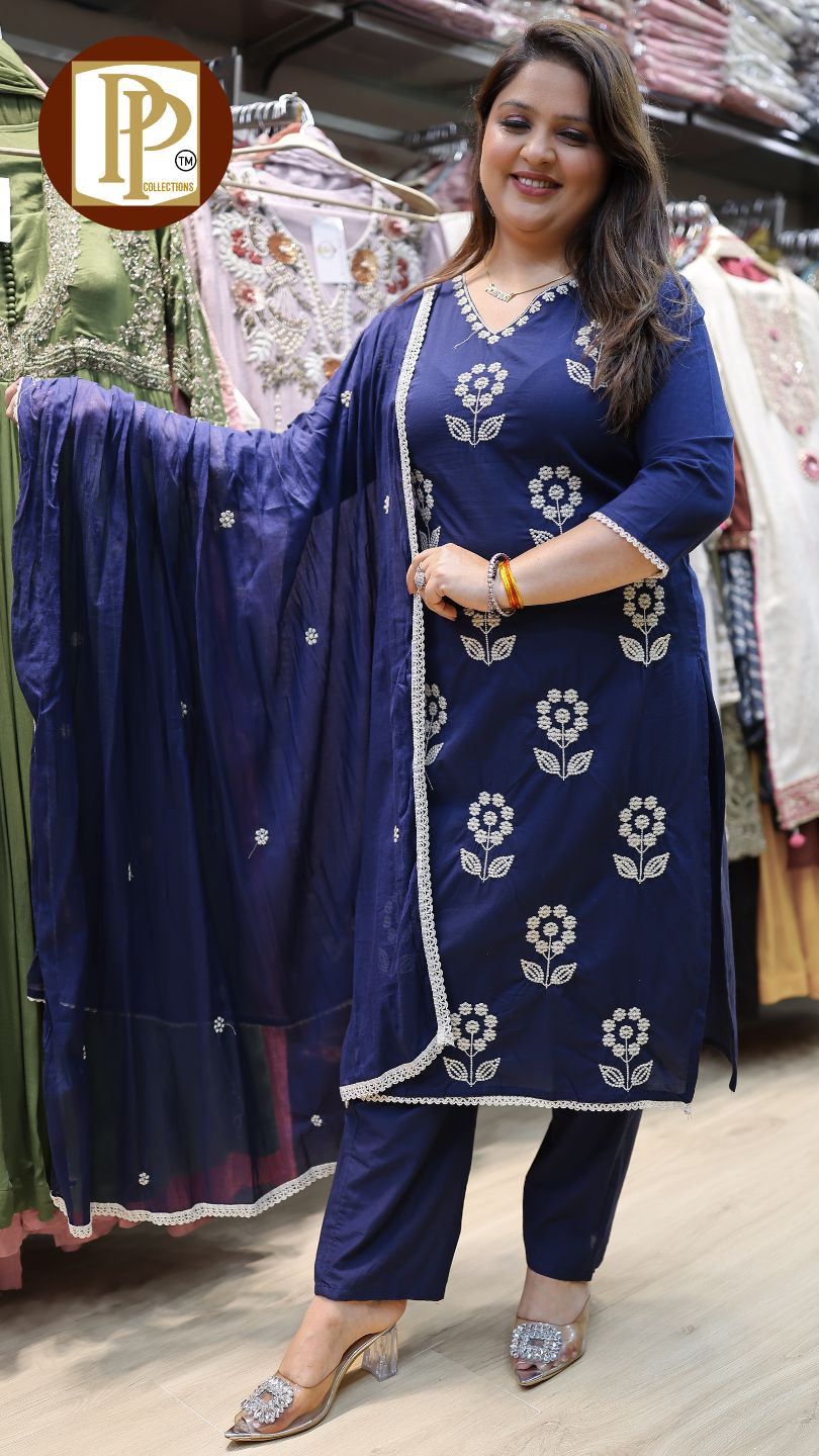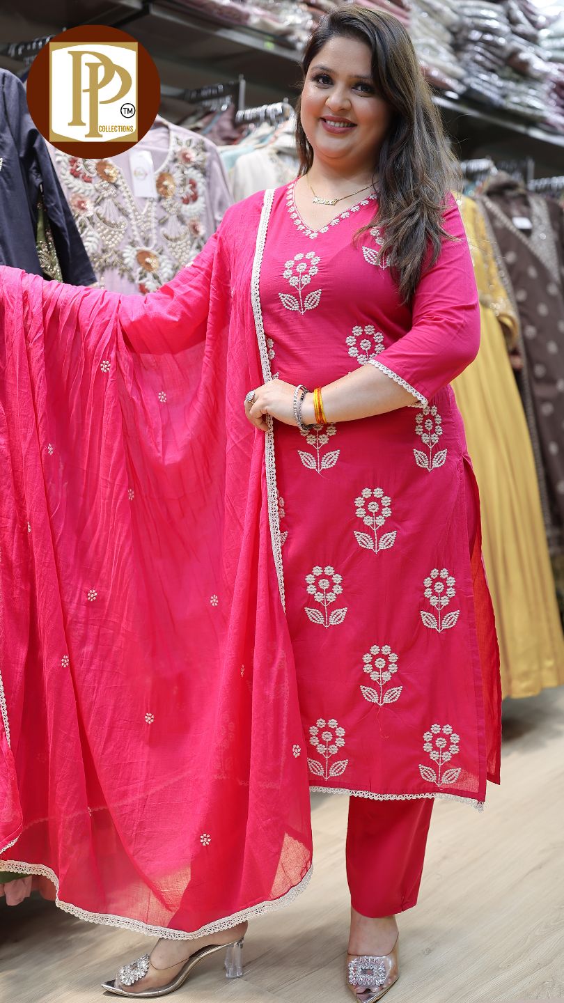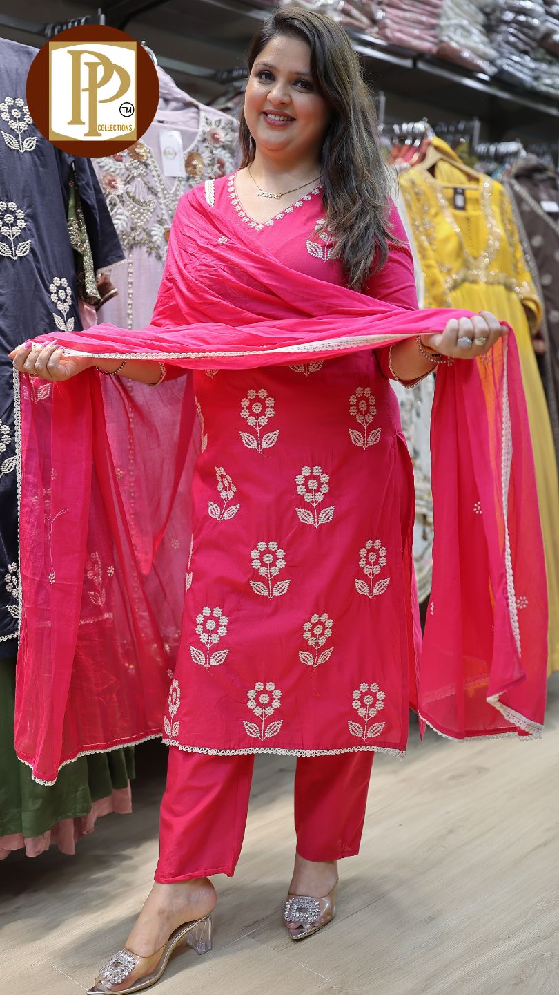 Work Type : full heavy threadwork in kurta with matching pants & dupatta .