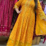 Attractive rayon anarkali pant set with thread work & original mirror work on upper part & print pattern on all over the kurta with matching thread work on organza borders of kurta with matching organza work on borders of pant & sleeves with matching print pattern on borders of dupatta.
