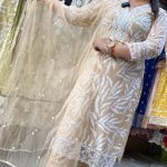 Out of StockAttractive cotton 3pc pant set with laces work on upper part with block printed pattern on all over the kurta with matching printed pants & matching dupatta.