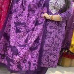 Out of StockAttractive 3pc cotton suit with white thread work on upper part with matching thread work also on sleeves & pant borders with floral print on all over the kurta with matching pants & matching print on all over the dupatta.
