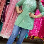 Attractive rayon single piece top with chikankari thread work on upper part with matching work also on all over the top.