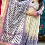 Attractive 2pc mal cotton gown dupatta set with thread & print pattern on gown with matching printed pattern on all over the dupatta.